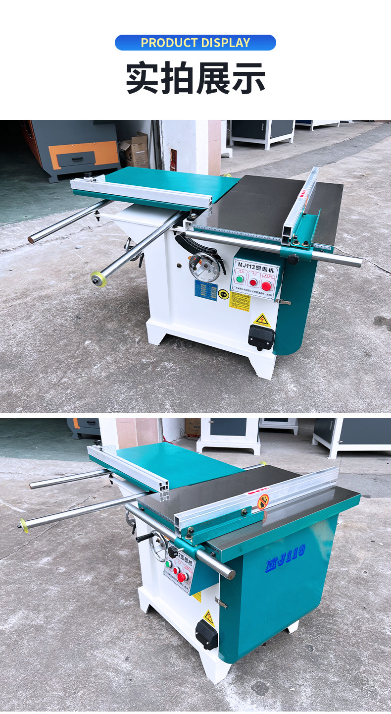 | 主轴转速3800r/min 主轴直径25.4mm 锯片最大直径:405mm, 最大加工厚度:90mm(45)140mm(90) 推台最大行程:680mm, 安装功率: 3km, 外形尺寸:1600*1300*900mm 重量:300kg 标配三相3千瓦国标电机 Spindle speed 3800r/min Spindle diameter 25.4mm Maximum diameter of saw blade: 405mm, Maximum processing thickness: 90mm (45) 140mm (90) Maximum stroke of the sliding table: 680mm, Installed power: 3km, Overall dimensions: 1600*1300*900mm Weight:300kg Standard three-phase 3kW national standard motor |